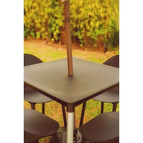 Mesa em polipropileno lisa, 74 x 74cm, com aditivo protetor contra raios UV. Pés em alumínio. Foi especialmente desenvolvida para ser utilizada em conjunto com as cadeiras da marca IM IN, seu design atemporal permite a aplicação com muitos modelos e em qualquer ambiente, incluindo espaços corporativos, comerciais e residenciais.