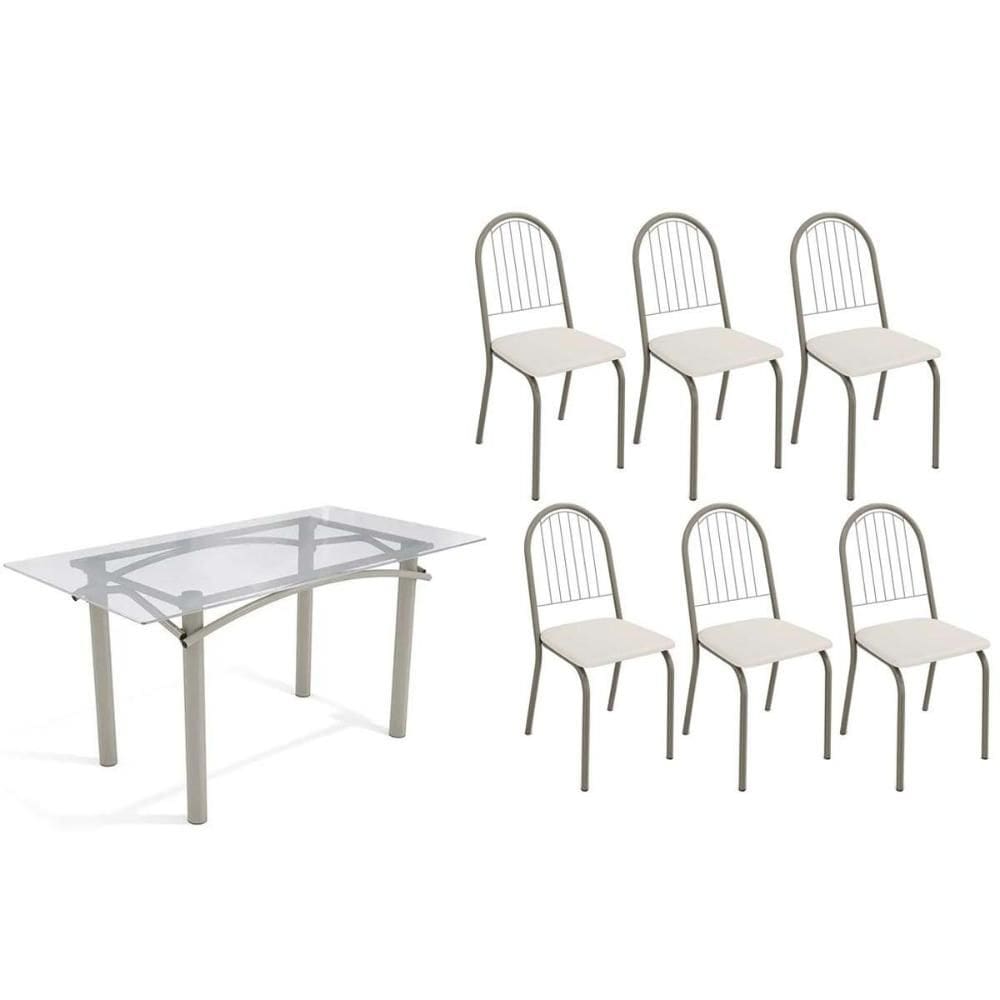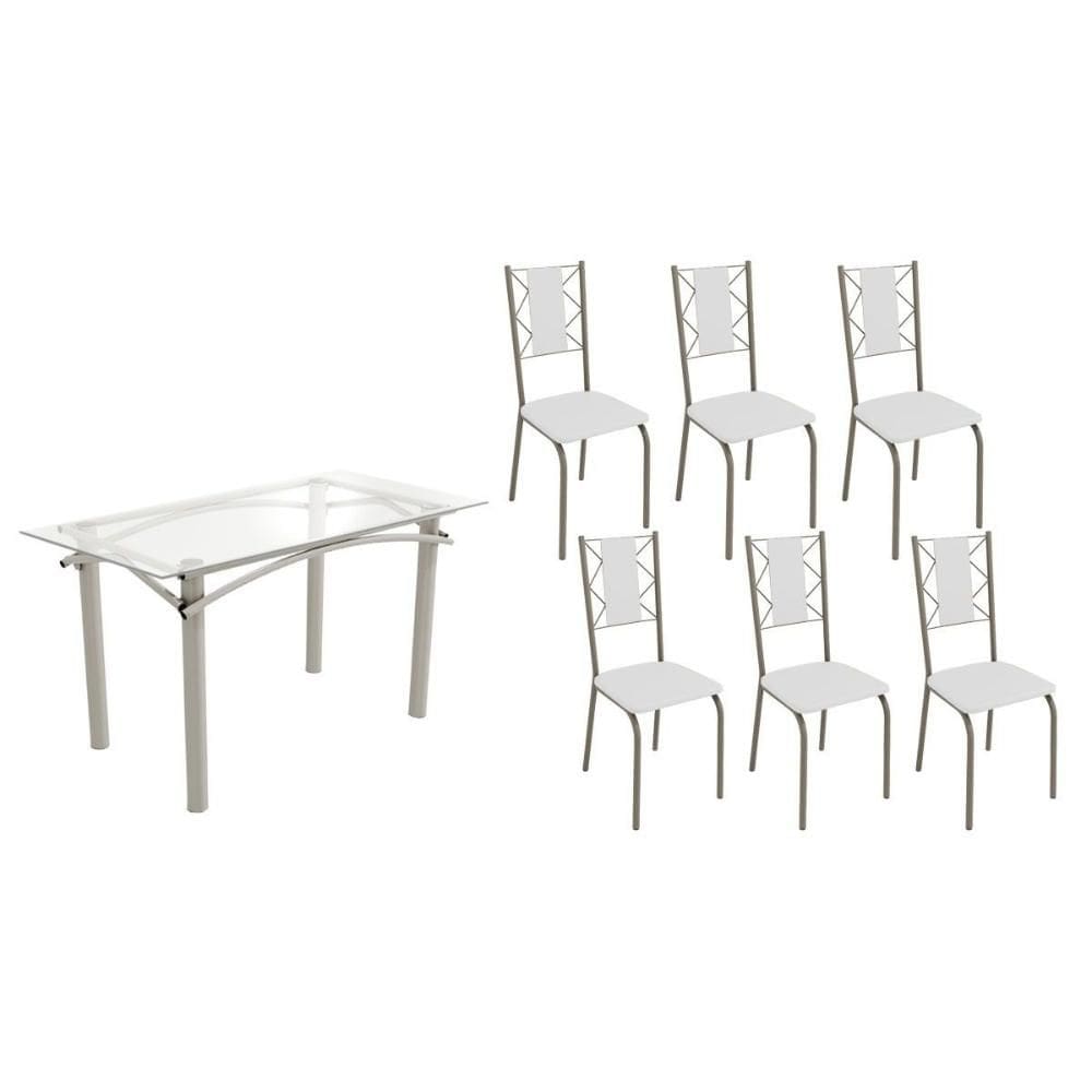 mesa 6 cadeira branca com tampo vidro