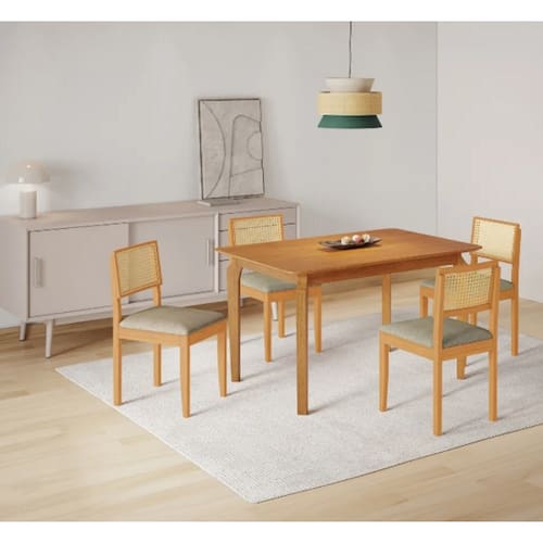 Mesa Alegra com 4 Cadeiras Jade Linho Cinza JCM Movelaria