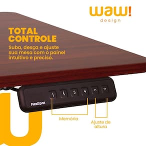 Diferenciais que fazem a diferença: Ajuste de altura eletrônico: de 77cm a 112cm com o tampo instalado . Controlador digital com visor LED: mostra a altura em tempo real. 3 posições de memória: salve os ajustes favoritos para alternar com rapidez. Velocidade de ajuste: 20mm/s silenciosa e eficiente. Base expansível: compatível com tampos de 90cm a 140cm de largura, garantindo flexibilidade para o futuro. Estrutura em aço reforçado: resistente, com acabamento em pintura epóxi. Bivolt automático: 110 A 220V .