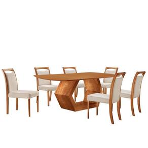 Mesa Ane 180 Tampo Laminado Barril Com 6 Cadeiras Munique Linho Off Imbuia Natural Conjunto Mesa de Jantar Ane e Cadeira Munique: Estilo e Sofisticacao em Cada Detalhe Adicione um toque de elegancia a sua sala de jantar com o Conjunto Mesa de Jantar Ane e a Cadeira Munique. A Mesa Ane, com tampo em formato barril e uma base geometrica, e a combinacao perfeita de design moderno e sofisticacao. Seu estilo minimalista e as linhas limpas tornam essa mesa a peca central de qualquer ambiente, seja em uma sala de jantar formal ou mais descontraida. A Cadeira Munique, com seu assento e encosto estofados, oferece conforto excepcional e estilo refinado. Os detalhes curvos em madeira no encosto sao um toque delicado, que harmonizam perfeitamente com o design da mesa.