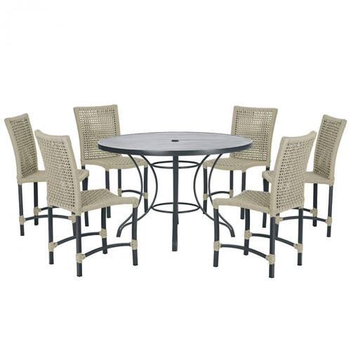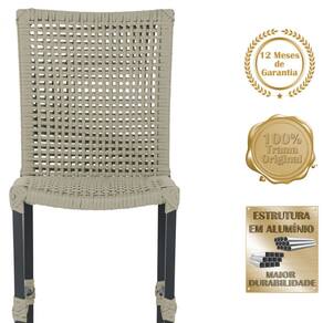 Mesa Ascoli 120 Cm com 6 Cadeiras Cannes de Alumínio, Pintura Preta e Trama Tela de Corda Náutica - Bege