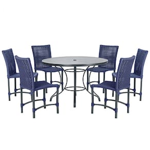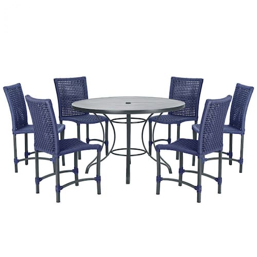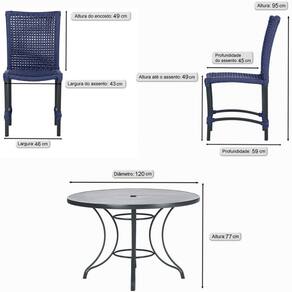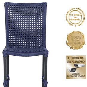 Mesa Ascoli 120 Cm com 6 Cadeiras Cannes de Alumínio, Pintura Preta e Trama Tela de Corda Náutica - Azul Marinho