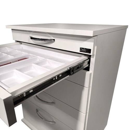 DEKI MÓVEIS CLÍNICOS, pioneira na fabricação de móveis para clínicas no BrasilCARACTERÍSTICAS- A ergonomia que você procura- ORIGINAL Deki Móveis Clínicos, direto de nossa fábrica!- Fabricada com maquinário de última geração- Produzida 100% MDF (Medium-density fiberboard), com melamínico BRANCO, o MDF é tipo de madeira produzida por meio de fibras, resinas sintéticas e aditivos- Exageradamente fácil de higienizar, assegurando a limpeza necessária em ambientes que exigem alto grau de assepsia- Incluí ainda 1 (uma) bandeja divisória para organização dos seus materiais- Alças (puxadores) super-resistentes, fabricados com liga Zamak, tecnologia germânica, garantindo uma pegada confortável- Gavetas ordenadas de modo impecável, totalizando 5- Durabilidade e resistência, tenha em suas mãos um móvel que te atenderá por muitos anos - Completará seu consultório com primazia e belezaATENÇÃO!!! A PRIMEIRA GAVETA NÃO ABRE, É FIXA, SERVE APENAS PARA MOVIMENTAR A MESA AUXILIAR!!!Mesa Auxiliar 05 + 1 Bandeja OrganizadoraJÁ VEM PRONTO!!! A MESA AUXILIAR CHEGA MONTADA ATÉ VOCÊ!!!PRONTA PARA SER UTILIZADA, NÃO PERCA TEMPO COM MONTAGENS!!!QUANTIDADE DE GAVETAS05 (cinco)QUANTIDADE DE ABAS RETRÁTEIS02 (duas)MATERIALEstrutura em MDF da melhor qualidade e puxadores Liga ZamakCORBrancoMEDIDAS EXTERNASLargura 49cm x Altura 72cm x Profundidade 39cmMEDIDAS INTERNAS2 gavetas com Largura 39,5cm x Altura 4,5cm x Profundidade 30cm2 gavetas com Largura 39,5cm x Altura 9,5cm x Profundidade 30cm1 gaveta com Largura 39,5cm x Altura 15cm x Profundidade 30cmMATERIAL DOS PUXADORESMetal cromadoCOMPOSIÇÃO5 gavetasQUANTIDADE DE RODÍZIOS04 (quatro)NOTA FISCALEmitimos notas fiscais em todas as nossas vendasQUALIDADENossos produtos são testados e aprovados por uma equipe especializada de profissionais, passam por minuciosos testes de qualidade antes de serem embalados e enviadosGARANTIATODA a linha de produtos da DEKI MÓVEIS CLÍNICOS possuí 3 meses de garantia contra defeitos de fabricaçãoPRODUTOS A PRONTA ENTREGAA DEKI MÓVEIS CLÍNICOS, possuí todos os móveis em estoque, portanto todos os nossos produtos são a pronta entrega. Garantindo dessa maneira, o MELHOR PRODUTO no MENOR TEMPO DE ENTREGA!AVISOSFique atento, as cores podem sofrer alterações dependendo do seu monitor, além da cor, pequenos detalhes e acabamentos podem não ficar evidentes na foto, por isso as imagens são meramente ilustrativas, podendo ser alterados também os modelos de rodízios, puxadores, cuba e torneira. Todos os nossos produtos são fabricados seguindo todas as normas da ANVISALIMPEZA E CUIDADOSEstrutura: Pano umedecido com água/ agente desinfetanteCuidados: Não utilizar produtos químicos ou abrasivos na limpeza. Evite batidas e o contato com objetos cortantesOUTROS PRODUTOSEste produto pode ser utilizado separadamente ou em conjunto aos demais móveis que compõem a linha da DEKI MÓVEIS CLÍNICOS, conheça toda o nosso catálogo! móveis para clínicas, odontológicos, armários médicos, centros de estética, dermo, mesinhas para podologia, oftalmologia, orto, odonto, mesas auxiliares, odontokart, kart odontológico, torneira alavanca, ultrassonografia, ecografia, mobiliário odontológico, móveis para saúde veterinária, carrinhos para clínicas veterinárias, prático carrinho para podologia, mesa auxiliar amarela, balcão odontológico gaveteiro, mesa auxiliar carrinho para dentista, gaveteiro com rodízios para médicos, com 2 abas dobráveis mesa auxiliar clínica, carrinho auxiliar para esteticistas
