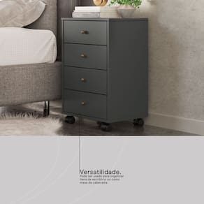 Com 4 gavetas espaçosas, ela permite organizar documentos, roupas ou objetos pessoais, suportando até 3kg por gaveta. Os rodízios (2 com trava) garantem mobilidade e segurança, tornando-a ideal para quartos, escritórios ou home office.