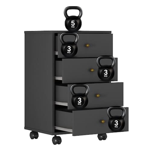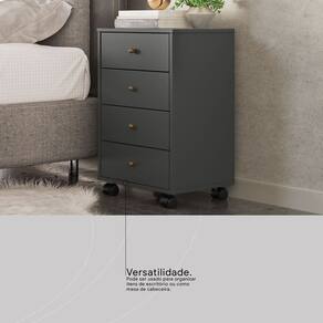 Com 4 gavetas espaçosas, ela permite organizar documentos, roupas ou objetos pessoais, suportando até 3kg por gaveta. Os rodízios (2 com trava) garantem mobilidade e segurança, tornando-a ideal para quartos, escritórios ou home office.