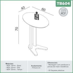 Acompanha o produto: - 01 mesa auxiliar oval modelo TB604 da Dalla Costa Garantia: - 6 MESES