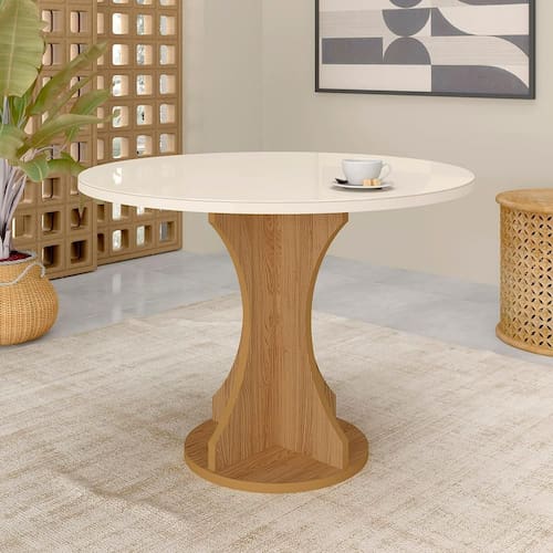 A Mesa Dacar redonda 1,10m de diâmetro é perfeita para sala de jantar, cozinhas e área gourmet. É vendida avulsa sem cadeiras, permitindo que você escolha o melhor assento que mais combinam com seu ambiente. Produzida no MDF oferecendo qualidade e resistência, tampo com vidro que traz beleza e praticidade para limpar. Sofisticação e qualidade em um só produto!
