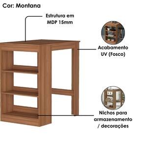 Mesa Bancada B15, funcional e estilosa, perfeita para complementar o seu ambiente! Estrutura em MDP de 15 mm, acabamento UV fosco que traz um visual moderno. Possui nichos ideais para organizar objetos ou expor decorações, que suportam 5 kg cada. Além do tampo que suporta até 20 kg distribuídos, oferecendo praticidade para o dia a dia. NÃO ACOMPANHA BANQUETAS NEM DEMAIS DECORAÇÕES. Este produto será entregue em 1 volume.