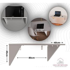 Largura: 80 cm Altura: 45 cm Profundidade: 40 cm Como fixar na parede: