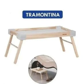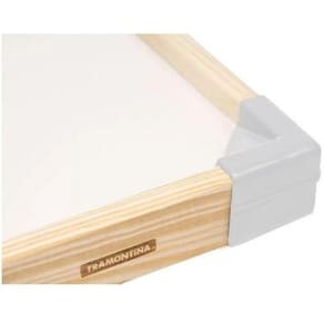 A Bandeja Tramontina Small com Pés Dobráveis Estrutura em Madeira Maciça e Cantoneiras em Polipropileno Cor Branca é a escolha ideal para servir aquele café da manhã delicioso e cheio de variedades. Ela é produzida em madeira pinus, derivada de florestas de produção e conta com acabamento natural e cantoneiras na cor branca, o que garante um design ainda mais moderno. Além disso, ela é muito versátil e pode ser utilizada também como objeto decorativo ou para você dispor itens para organizar sua mesa, balcão ou aparador. Com a Tramontina, você tem o melhor para sua casa!INFORMAÇÕES GERAIS1. Produzida em madeira de pinus acabamento natural sem pintura.2. Cantoneiras em polipropileno cor branca.3. Design moderno.4. Ideal para servir café, lanches e refeições.5. Pés dobráveis.6. Não possui trava nos pés.7.Tamanho útil do tampo: 443x245mmRECOMENDAÇÕES DE USOLimpar somente com pano úmido.