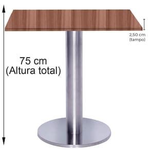 Mesa Beta Big Inox 75 Cm (alt) Disco Redondo Tampo Mdp Quadrado 60 Cm (larg) X 2,50 Cm (alt) Walnut