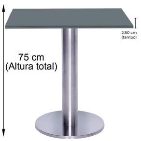 Mesa Beta Big Inox 75 Cm (alt) Disco Redondo Tampo Mdp Quadrado 80 Cm (larg) X 2,50 Cm (alt) Grafito