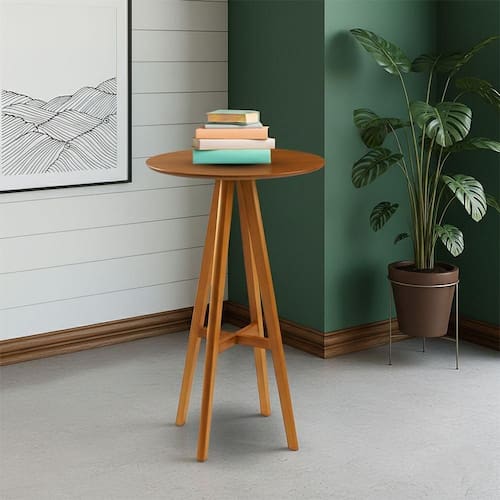 AS IMAGENS SÃO MERAMENTE ILUSTRATIVAS E PODEM SOFRER VARIAÇÕES DE COR E PEQUENOS DETALHES DE ACORDO COM O SEU MONITOR, ILUMINAÇÃO DO AMBIENTE E ATÉ MESMO A SUA PERCEPÇÃO VISUAL.Mesa Bistrà Alta Redonda Sila Base Madeira MaciÃa Mel
