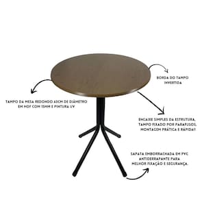 Mesa Bistrô Baixo Preto com Tampo Redondo AmadeiradoQuem não gosta de reunir os amigos e familiares para confraternizar e fazer um aperitivo?E por que não apostar em toda a versatilidade da Mesa Bistrô? Com pernas alongadas para que os convidados possam ficar de pé ou combinar com banquetas, ela tem tampo redondo ideal para apoiar petiscos e os copos. De estrutura firme, ela é um complemento e tanto para a varanda gourmet, áreas sociais da casa ou bares.Características da Mesa BistrôModelo: Baixo Material Bistrô: Tubo 1 e 1/8Material do Tampo: MDF 15mm Acabamento Mesa: Pintura Epóxi em Pó Acabamento Tampo: Pintura UVMontagem: Encaixe simples e parafusos no tampoMedidasAltura Total do Produto: 78cmDiâmetro da Tampa: 60cmEspessura da Tampa: 15mmPeso Máximo Recomendado sob o Produto: 15 kgConteúdo da Embalagem: 1 Mesa Bistrô BaixoDicasNão deixe seu bistrô exposto ao sol por mais de 4 horas;Não use produtos abrasivos na limpeza do seu bistrôUsar um pano umedecido na limpeza do bistrô e, logo em seguida, seque-as com um pano seco.A tonalidade da cor pode variar de acordo com o lote do fabricante e/ou as configurações de seu monitor.*Imagens meramente ilustrativasGarantia3 Meses contra defeito de fabricação