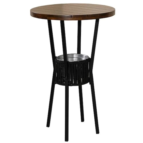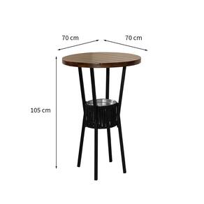 Mesa Bistro Bar Redonda com Cooler Paonanda A Mesa Bistro Bar Redonda com Cooler Paonanda é a escolha ideal para quem busca uma peça elegante e funcional. Com um estilo moderno e formato redondo, ela se adapta perfeitamente a diversos ambientes. Seu tampo é feito de madeira maciça de pinus com um charmoso detalhe ripado, e recebe um acabamento em pintura UV com escala de brilho Fosco, garantindo durabilidade e um visual sofisticado. A base em aço oferece estabilidade e resistência, enquanto o cooler integrado a torna perfeita para momentos de lazer, mantendo suas bebidas sempre geladas.\nMEDIDAS\nAltura 105cm\nLargura 70cm\nProfundidade 70cm\nCARACTERÍSTICAS\nFabricante Paonanda\nModelo Mesa Bistro Bar\nGarantia 3 meses\nTipo de produto Mesa Bistro\nAmbiente Diversos\nEstrutura Aço, Tampo Madeira Maciça de Pinus, Cooler Removível\nAcabamento Pintura UV com escala de brilho Fosco\nNecessita Montagem Sim\nAcompanha Manual de Instalação Sim\nINFORMAÇÕES IMPORTANTES\nObjetos decorativos que porventura apareçam na foto, não acompanham o produto. Não nos responsabilizamos pela montagem/instalação dos produtos.\nMontagens, desmontagens e instalações são responsabilidades do cliente. Indicamos que contrate uma empresa de montagem ou um montador de sua confiança.\nAlém disso, favor verificar se os pés e acessórios estão dentro do forro inferior do produto. Em suma, todas as informações divulgadas sobre o produto são de responsabilidade do Fabricante.\nAs cores do produto podem variar de acordo com o seu monitor, a iluminação do ambiente em que você está e até mesmo a sua percepção visual. Além da cor, pequenos detalhes e acabamentos podem não ficar evidentes na foto, por isso as imagens são meramente ilustrativas.