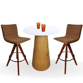 Mesa Bistrô Cone 60 cm Tampo Laca Branca Base Freijó