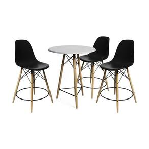 Mesa bistrô eames eiffel branca com 3 banquetas pretas de madeiraO conjunto de mesa e banqueta eames eiffel bistrô possui um design moderno cheio de charme, fabricado com material de alta qualidade, proporcionando o melhor conforto e sem perder o estilo. A banqueta possui uma curvatura ergonômica que se encaixa perfeitamente ao corpo, ficando ainda mais completo com a mesa.Tipo: conjuntoModelo: bistrôCor da mesa: brancoCor da banqueta: pretoCaracterísticasProduto nacionalBase: madeira maciçaTampo da mesa: mdfAssento: plástico polipropilenoBanqueta suporta: até 120kgGarantia: 90 diasDimensões da banquetaAltura: 115cmAltura até o assento: 70cmLargura: 45cmComprimento: 45cmDimensões da mesaAltura: 97cmDiâmetro: 60cmImagens meramente ilustrativas, podendo haver uma pequena variação na cor dependendo de cada tela ou monitor. Objetos da imagem ambientada não acompanham o produto.Mesa Bistrà Eames Eiffel Branca com 3 Banquetas Pretas de Madeira