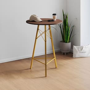 Características: Modelo: Mesa Bistrô Material da Estrutura: Ferro Cor da Estrutura: Dourado Formato do Tampo: Redondo Cor do Tampo: Amêndoa Design moderno e funcional