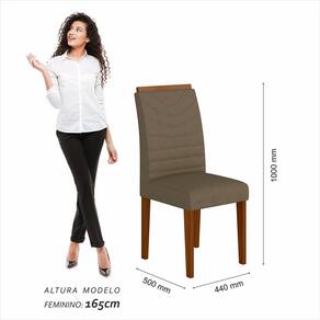 Detalhes Técnicos das Cadeiras -Assento e Encosto Tapeçados, Estofados e Fixos -Peso Suportado da Cadeira:90KG -Facilidade da Montagem:Média -Tonalidade da Cadeira:Cinamomo/Suede Capuccino -Espuma do Assento:D16 -Tipo de Pintura:UV Texturizada -Material da Estrutura:MDF/Madeira Eucalipto -Medida da Cadeira:A100CMxL44CMxP50CM