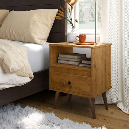mesa cabeceira 1 gaveta estilo retro classico Freijo - Marrom