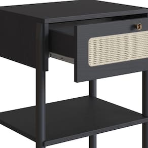 Mesa Cabeceira 1 Gaveta Oslo Artesano 48cm (largura) Mdp Nero Palha Sintética Bege Pé Madeira Maciça
