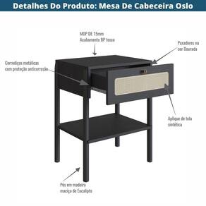 A Mesa de Cabeceira 1 Gaveta Oslo é confeccionada em MDP com acabamento BP, pés de madeira maciça e aplique de tela sintética na gaveta. Móvel multifuncional, conta com uma gaveta para guardar acessórios, tornando o espaço mais organizado. Traz como característica um traço artesanal, suave e acolhedor. Com design escandinavo minimalista, remete em suas linhas retas a simplicidade, charme e funcionalidade que sua casa merece. Composta com uma paleta de cores neutras, Nero é um acabamento ebanizado atemporal, para quem deseja fugir do tradicional sem perder a nobreza, sofisticação e elegância da madeira, tornando-se assim a opção ideal para um ambiente com toque sofisticado e ao mesmo tempo aconchegante.
