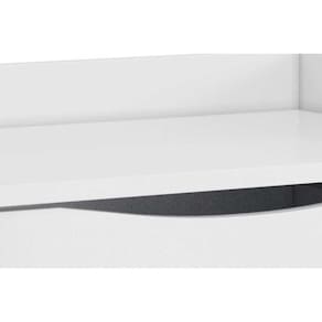 CARACTERÍSTICAS DE MÓVEIS Tipo de Estrutura do Móvel - MDP Tipo de Pintura - UV Tipo de Acabamento da Pintura - Fosca Características de móveis - Ângulo Reto Tipo de puxador - Vazado Quantidade de Gavetas - 2 Gavetas Diferenciais da Gaveta - c/ Corrediças Telescópicas Garantia - 3 meses