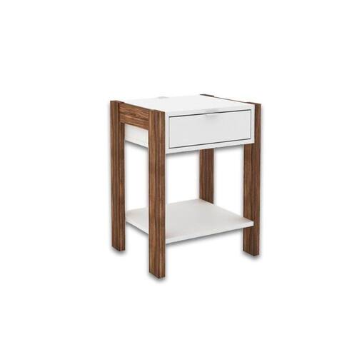 Mesa Cabeceira AZ1016 c/ 1 Gaveta Branco/Nogal - Tecno Mobili