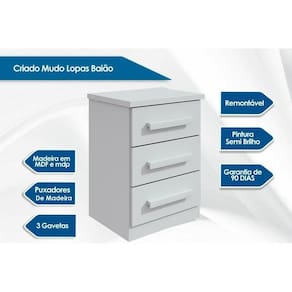 Mesa Cabeceira Baião c/ 3 Gavetas Branco - Lopas