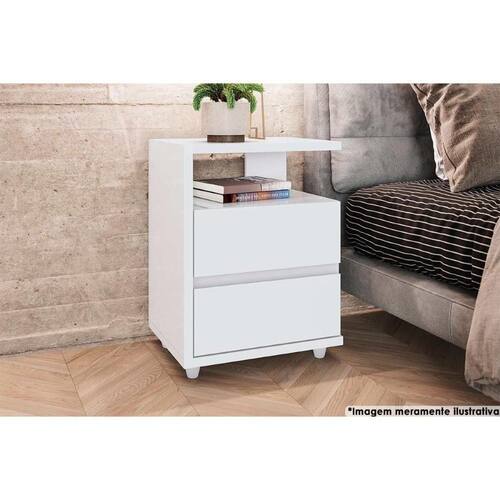 Mesa Cabeceira Campeche c/ 2 Gavetas Branco - Henn
