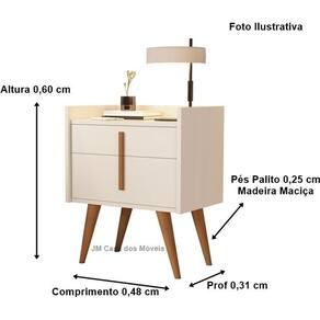 dimensões do produto montado altura: 0,60 cm largura: 0,48 cm profundidade: 0,31 cm caractersticas: 1 gaveta corrediça telescópica 1 porta dobradiça metálica pés palito madeira maciça mdf 15mm as cores deste produto possui brilho. Puxadores em madeira. Montagem: este produto acompanha kit de montagem + manual de instrução detalhando passo a passo de como montar. A montagem do produto deverá ser feita por um profissional, para que não ocorram danos no produto. não nos responsabilizamos por erro de montagem