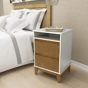 Transforme o seu quarto com uma peça que une elegância, praticidade e acolhimento. A Mesa de Cabeceira com Nicho e 2 Gavetas é o complemento perfeito para quem valoriza ambientes bem organizados sem abrir mão do estilo. Com design contemporâneo e acabamentos nobres nas cores Freijó ou Off White/Freijó, ela proporciona uma atmosfera leve e sofisticada ao espaço. Suas duas gavetas espaçosas e o nicho superior oferecem praticidade para manter tudo ao alcance, desde livros até objetos pessoais, com muito bom gosto. Versátil e compacta, essa mesa de cabeceira é ideal para compor com outros móveis da linha, criando um quarto harmonioso e convidativo.