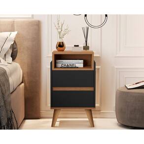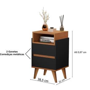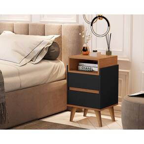 Mesa de cabeceira pés palito verona 2 gavetas preto / nature - comprar moveis em casa