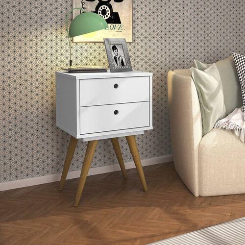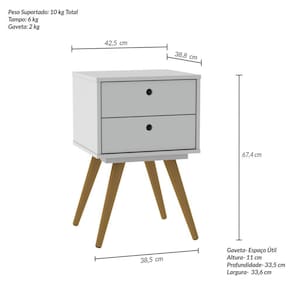 Mesa Cabeceira Retro 50 2 Gavetas Branco - Olivar Móveis