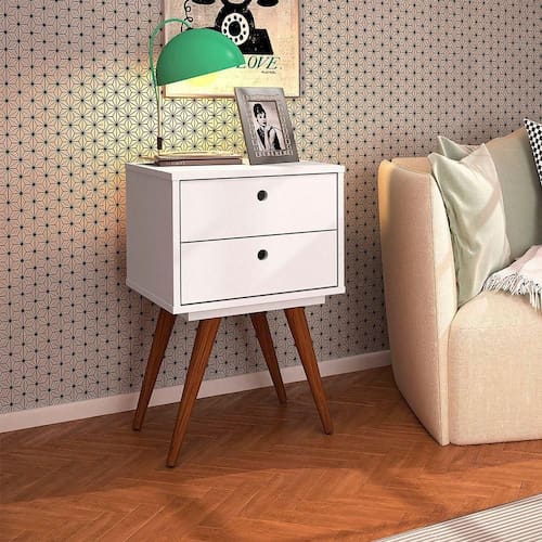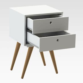Mesa Cabeceira Retro 50 Branco Mdf/mdp 42cm Olivar - Cor: Branco MESA CABECEIRA RETRO 50 BRANCO MDF/MDP 42CM OLIVARMesa Cabeceira Retrô 50, possui 2 gavetas c/corrediças metálicas. Possui pés palito em madeira, trazendo o design Retrô.Cor: Branco AC ? Branco AcEscala de brilho: Acetina e TouchDimensões (LXPXA): 42,5 X 38,8 X 67,4 CMMaterial da estrutura: MDP e MDFAcabamento: UVPeso do produto montado KG: 11,2kgNecessita de montagem? SimQuantidade de prateleiras: - Não possuiTipos de prateleiras: -Distância máxima e mínima entre prateleiras: -Quantidades de nichos: -Quantidades de gavetas: 2Tipos de portas: Não possuiMaterial dos puxadores: Não possuiRodízios: Não possuiTipos de pé: Pés palitoSuporta até (KG): 10KgEspaço para TV(LXAXP): L- 42,5 X P- 38,8 CMAcompanha suporte TV: Não possuiPossui furação para passagem de cabos: NãoPossui manual de montagem: SimRecomendação de limpeza: Pano úmido. Não aplicar lustra móveisVolumes: 1Garantia: 3mesesMesa Cabeceira Retro 50 Branco Mdf/mdp 42cm Olivar