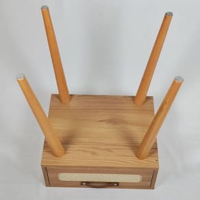 Os pés em madeira natural não apenas proporcionam estabilidade, mas também evocam uma estética retrô autêntica. Cada detalhe é pensado, incluindo a sapata com feltro, garantindo que sua Mesa de Cabeceira não apenas seja uma obra de arte funcional, mas também proteja seu chão contra riscos indesejados.