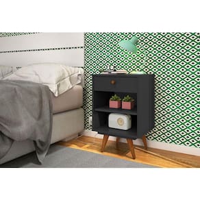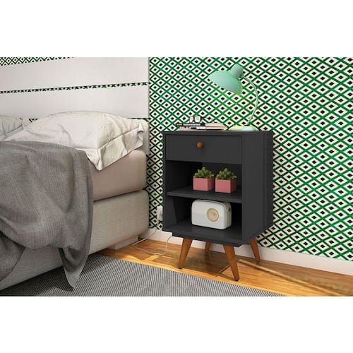 Mesa Cabeceira Retrô Plus Preto Ac / Preto AcMesa Cabeceira Retrô Plus Preto , possui gaveta com corrediças metálicas, prateleira interna para acomodação de diversos objetos. Possui pés palito em madeira trazendo o design retrô.Cor: Preto Ac/Preto AcEscala de brilho: AcetinadoDimensões (AxLxP): 66,7 x 42,5 x 38,8cmMaterial da estrutura: MDP 15 MM e MDF 15/25 MMAcabamento: UVPeso do produto montado KG: 12,1KgNecessita de montagem? SimQuantidade de prateleiras: 1Tipos de prateleiras: FixaQuantidades de nichos: -Quantidades de gavetas: 1Quantidades de portas: -Tipos de portas: -Quantidade de puxadores: 1Material dos puxadores: PlásticoRodízios: Não possuiQuantidade de pés: 4Tipo dos pés: Pé palito em madeiraAltura os pés: 17cmSuporta até (KG): 10KgEspaço para TV: -Acompanha suporte TV: NãoPossui furação para passagem de cabos: -Tamanho máximo de TV: -Possui manual de montagem: SimRecomendação de limpeza: Com pano umedecido. Não aplicar lustra móveis.Volumes: 1Garantia: 3 mesesMesa Cabeceira Retrà Plus Preto Ac / Preto Ac