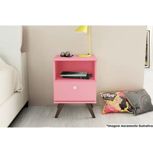Mesa Lateral p/ Sala RT3019 c/ 1 Gaveta Rosa - Movelbento
