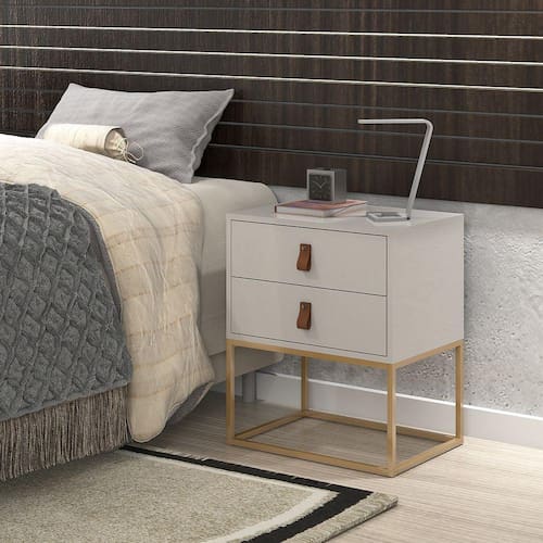 A Mesa de cabeceira possui os pés em ferro. As gavetas possuem corrediças telescópicas, o que dá maior qualidade, delicadeza e durabilidade ao produto e os puxadores em couro, somos pioneiros nessa tendencia que está bombando na europa.