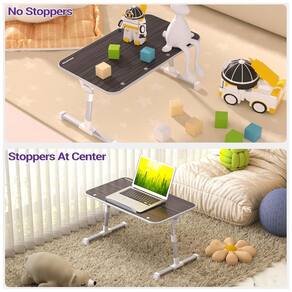 Fácil de usar Totalmente montado, dois botões de travamento automático em cada lado permitem facilmente mudanças rápidas na altura, as pernas podem ser definidas em 5 alturas diferentes ajustável de 9,4 12,6, além de duas braçadeiras podem ser usadas para ajustar a superfície ângulo, a superfície pode ser definida para 3 ângulos diferentes de 0 30 . A proteção contra o deslizamento das pulseiras do mouse e a saliência na parte inferior mantêm seu laptop enquanto inclinado, proporcionando conforto e estabilidade