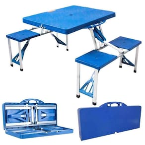 Mesa Dobrável Camping Maleta com 4 BanquetasPraticidade e Estilo para Qualquer OcasiãoLeve, compacta e prática, esta mesa dobrável é a escolha ideal para atividades ao ar livre, como camping, piqueniques e muito mais.Com design funcional, transforma-se em uma maleta fácil de carregar e ocupa pouco espaço no transporte e armazenamento.Durabilidade e SegurançaFabricada com estrutura de alumínio e aço esmaltado, possui tampo em plástico ABS reforçado, garantindo resistência e segurança.Acompanham 4 banquetas dobráveis confortáveis e práticas.Versatilidade de UsoProjetada para uso tanto em ambientes internos quanto externos, esta mesa é resistente à água e perfeita para qualquer ocasião.Características TécnicasMaterial: Plástico ABS reforçado (tampo) e estrutura de alumínio com aço esmaltado.Dimensões da Mesa: 85 cm (Comprimento) x 65 cm (Largura) x 65 cm (Altura).Dimensões das Banquetas Fechadas: 30 x 85 x 27 cm.Altura do Banco: 40 cm.Capacidade de Peso: Suporta até 100 kg.Peso Total: 7,90 kg.Diferenciais do ProdutoSistema dobrável para fácil montagem e desmontagem.Design compacto que vira uma prática maleta para transporte.Resistente à água, ideal para uso interno e externo.Inclui 4 assentos dobráveis.Cor disponível: AzulAproveite momentos de lazer com praticidade e conforto!