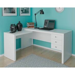 Mesa Canto p/Escritório ME4106 c/ 3 Gavetas Branco - Tecno Mobili