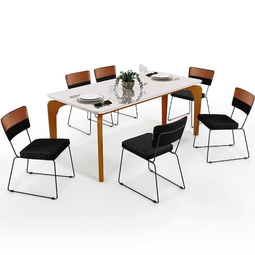 Percebemos hoje mais do que nunca o quanto os momentos com a família e os amigos são imprescindíveis, as refeições os tornam memoráveis, são uma ótima maneira de reunir a todos e colecionar lembranças especiais. A Mesa Capri 160 Off White Com 6 Cadeiras Allana B05 Faixa Couríssimo Camel Linho Chumbo - Lyam Decor vem justamente com essa proposta, seu tampo com bordas suavemente arredondadas transmite suavidade e contrasta maravilhosamente com as estruturas de aço com pegada industrial.