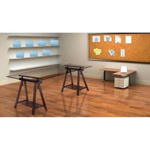 Cor: Preto Cavaletes com ótimo acabamento produzido com madeira de reflorestamento que ira deixar seu ambiente de trabalho com ar clean e de organização.São necessarios compra dois cavaletes para compor o ambiente.