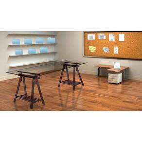 Cavaletes com ótimo acabamento produzido com madeira de reflorestamento que ira deixar seu ambiente de trabalho com ar clean e de organização.São necessarios compra dois cavaletes para compor o ambiente.