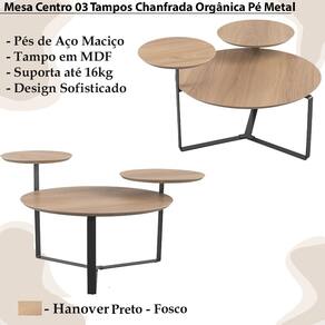 Mesa Centro 03 Tampos Chanfrada Pe Metal PR 28021