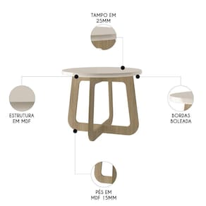Mesa Centro Redonda 65cm Para Sala MDF Rexxar Off/Carvalho A09 - Mpozenato