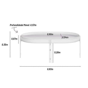 Espessura da Estrutura do Tampo - 18 Tipo de Formato Tampo da Mesa - Tampo Oval Tipo das Quinas do Tampo da Mesa - Bordas Arredondadas Tipo dos Pés - Pés Metálicos Quantidade de Pés - Móvel possui 4 pés