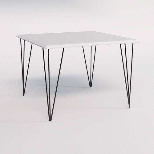 Mesa Clips De Ferro Preto Tampo Quadrado Branco 90X90
